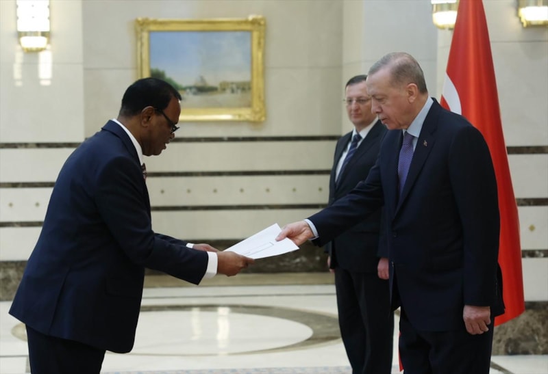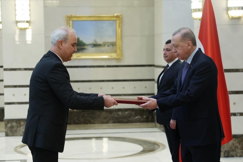 Cumhurbaşkanlığı Külliyesi'ndeki kabulde büyükelçiler, Erdoğan'a güven mektuplarını sundu.