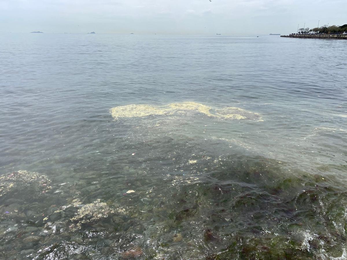 İstanbul'da hava sıcaklıklarının artmasıyla birlikte Kadıköy Caddebostan Sahili'nde denizin yüzeyinde müsilajı andıran görüntüler oluştu.