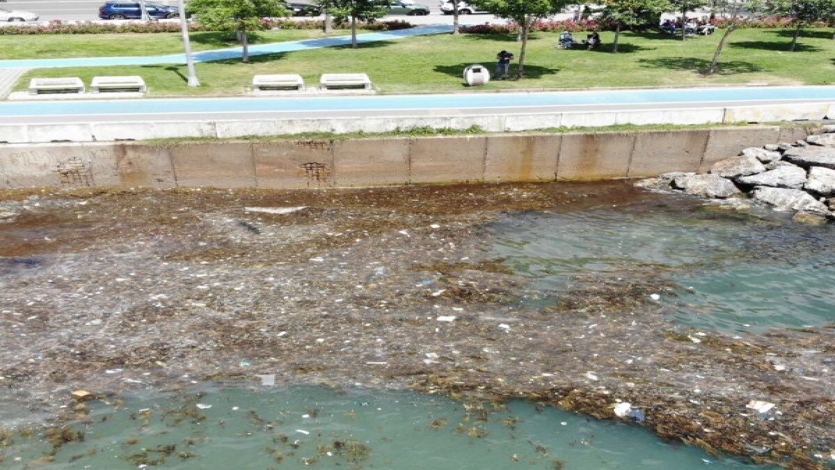 İstanbul'da Caddebostan Sahili'nde oluşan deniz üzerindeki çöp kirliliği hafta sonu sahilde yürüyüş yapan vatandaşların dikkatini çekti.