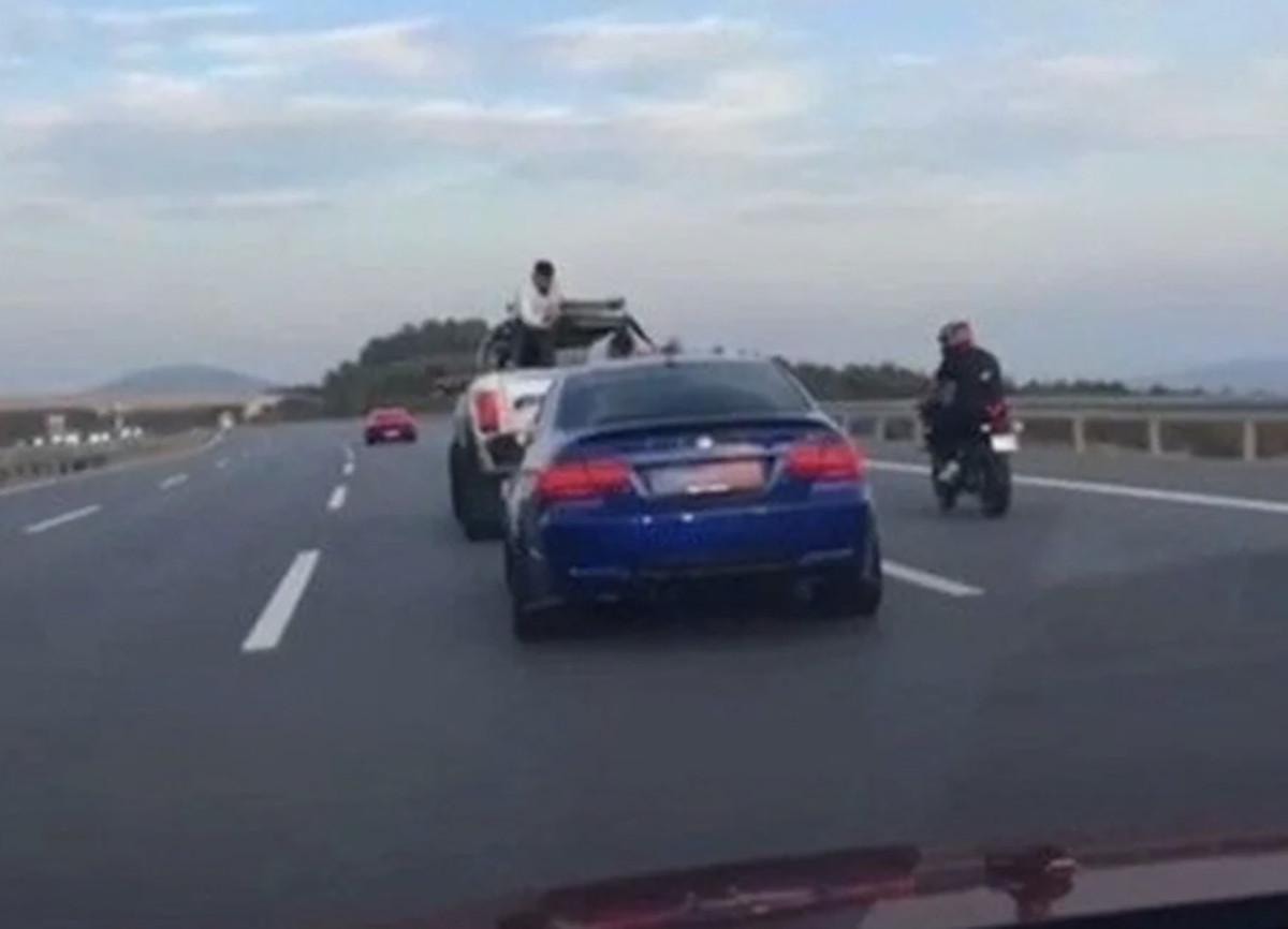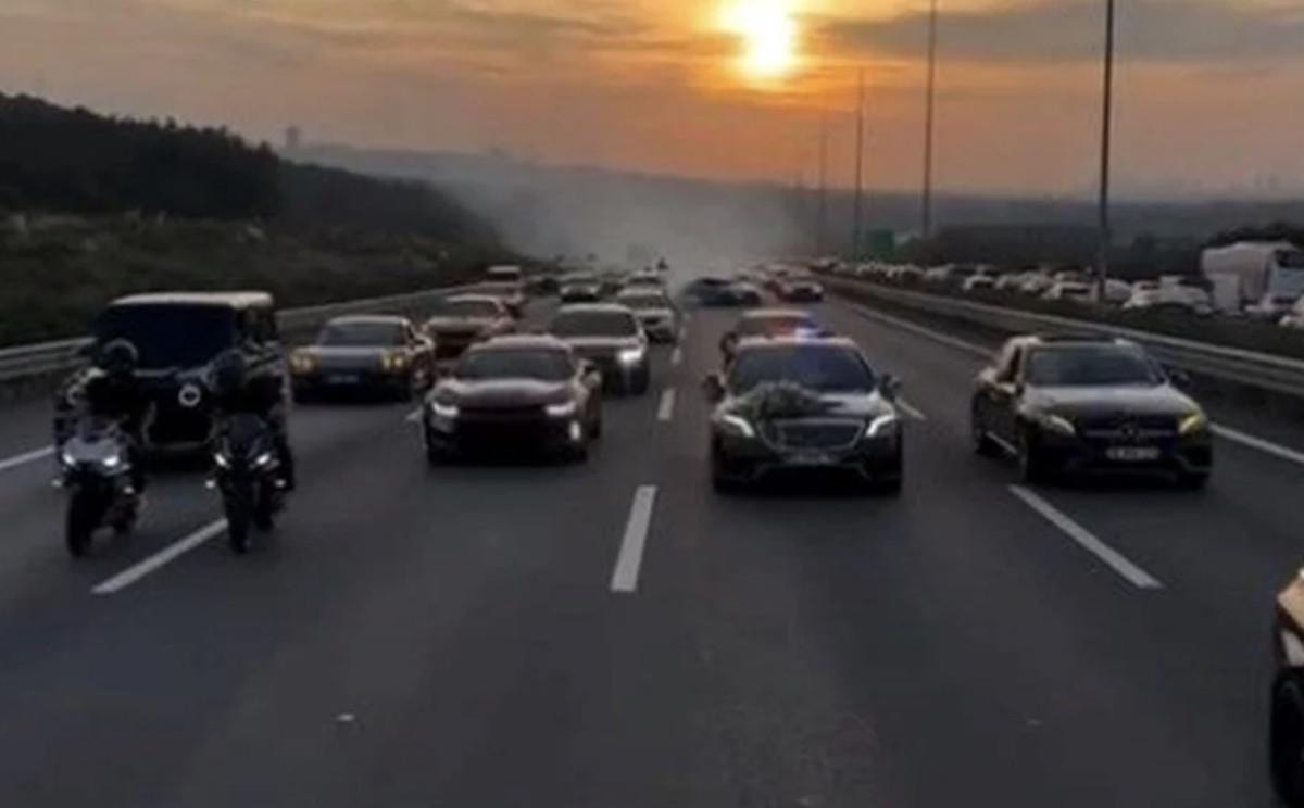 Konvoydaki otomobiller seyir halindeyken diğer seyir halindeki otomobil sürücülerini tehlikeye atarak, çakarlı araçlarla ilerledi.