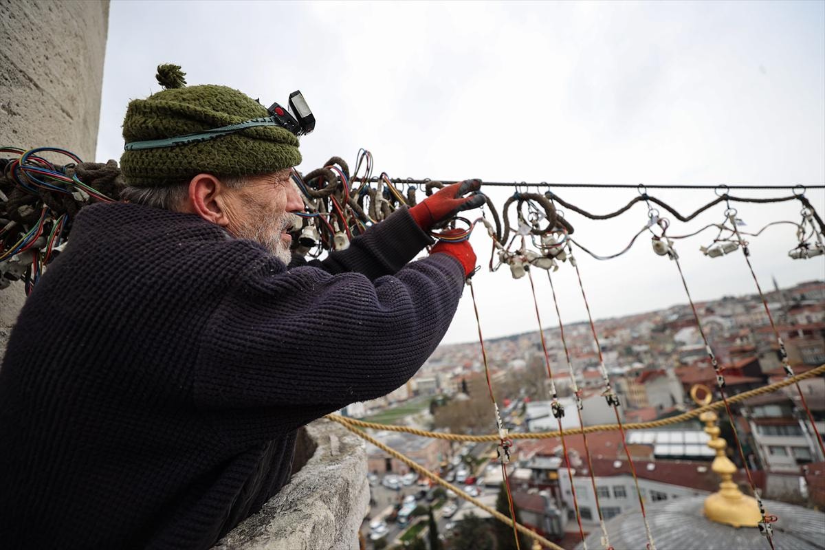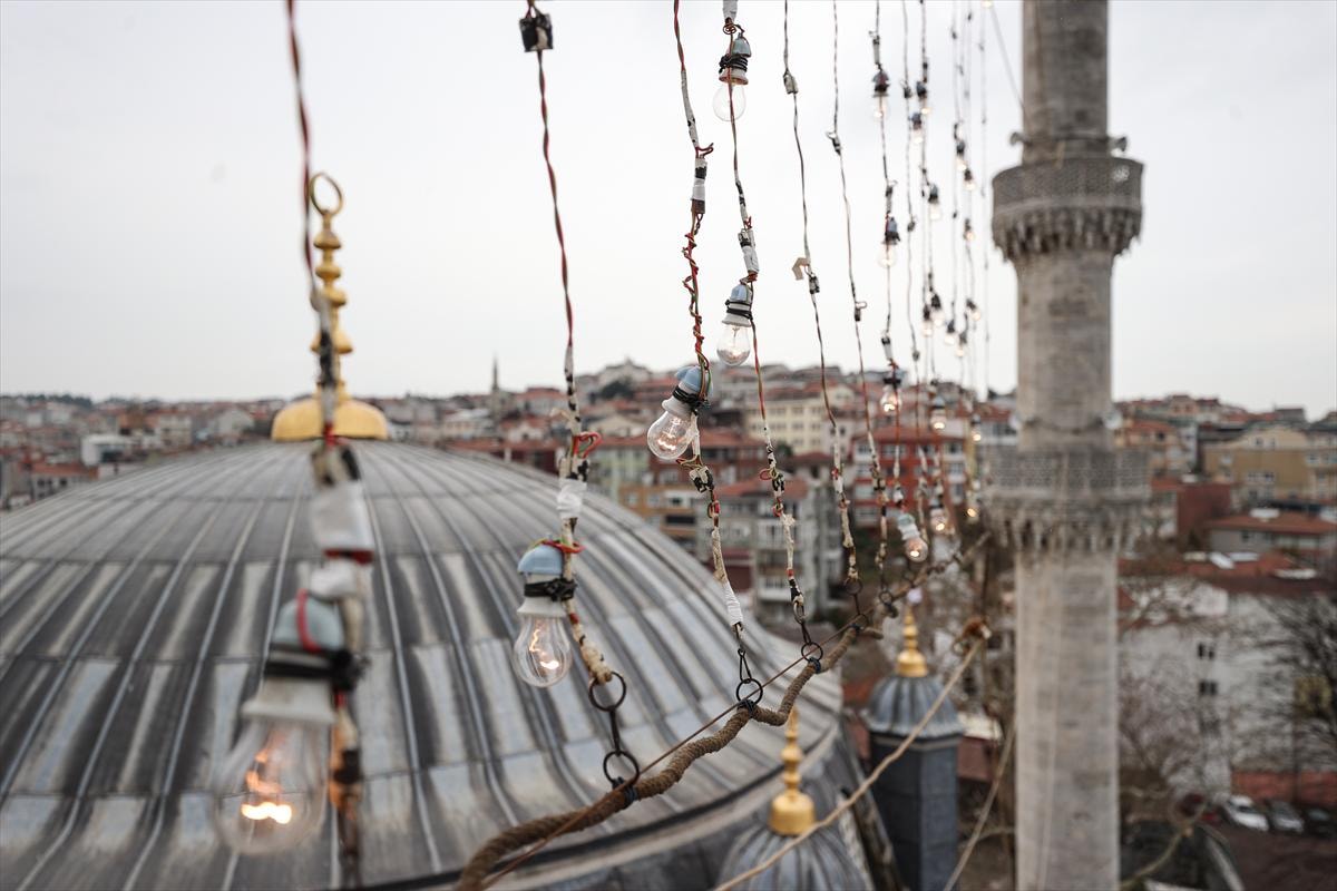 Tarihi camilere asılan mahyalar, Ramazan ayının ruhunu tam anlamıyla yaşatıyor.