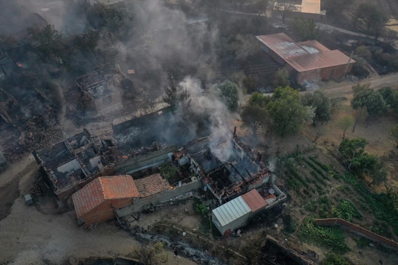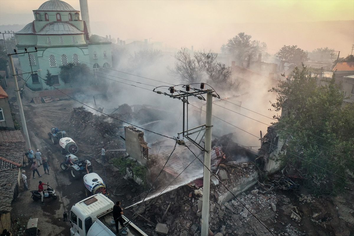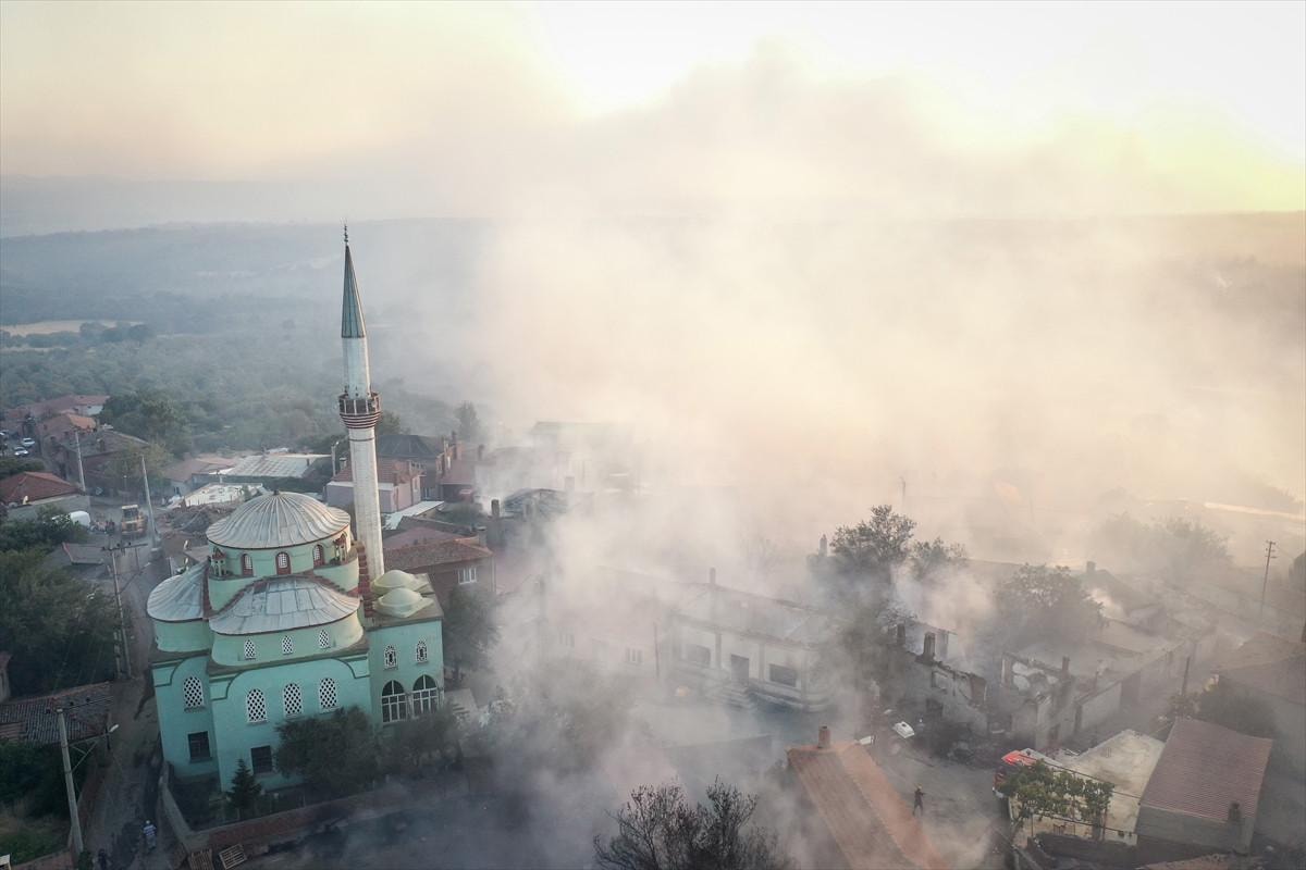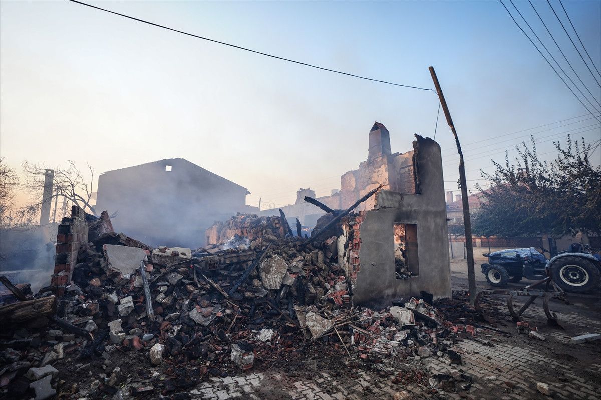 Çanakkale'nin Bayramiç ilçesinde çıkan orman yangını söndürme çalışmaları sürerken, boşaltılan üç köyden gelen görüntüler tahribatın boyutlarını gözler önüne seriyor.