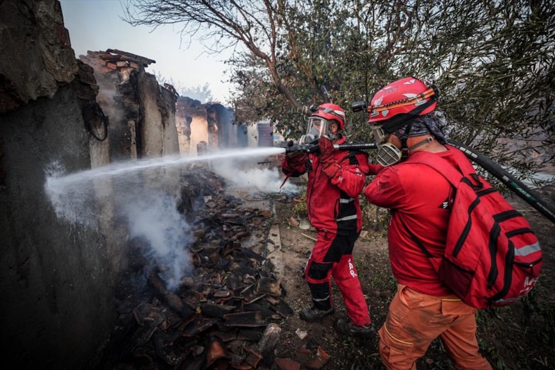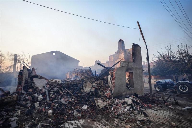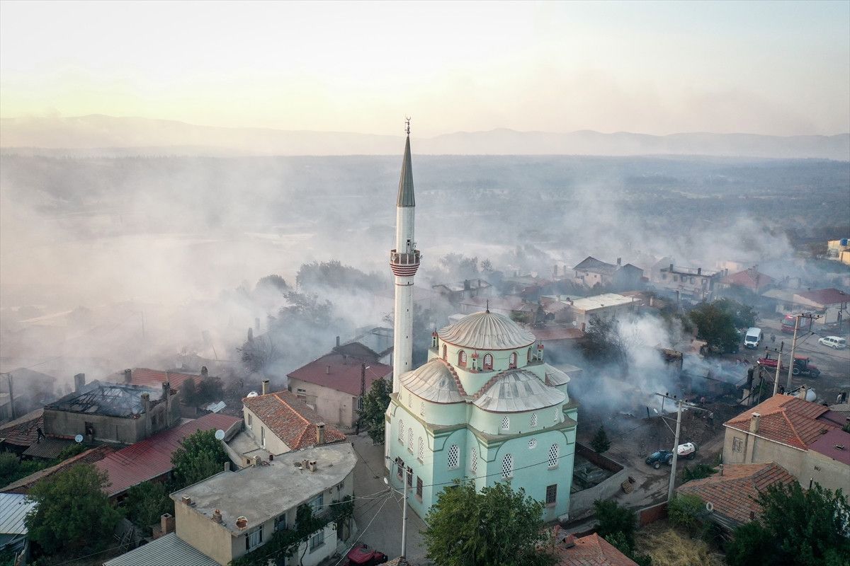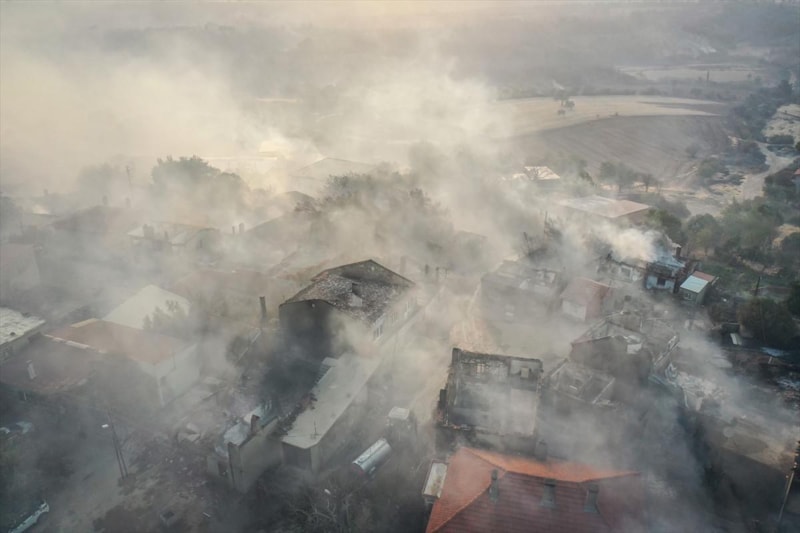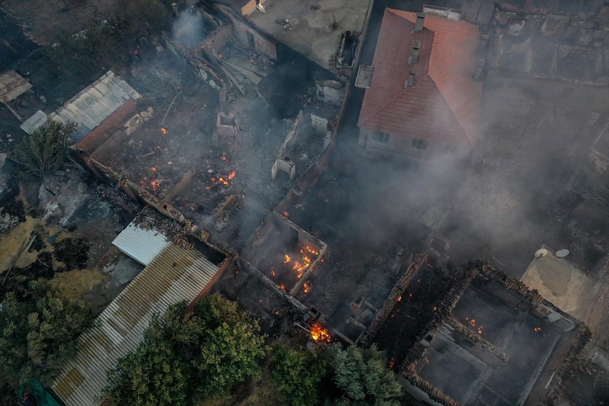 Çanakkale'nin Bayramiç ilçesinde çıkan orman yangını söndürme çalışmaları sürerken, boşaltılan üç köyden gelen görüntüler tahribatın boyutlarını gözler önüne seriyor.