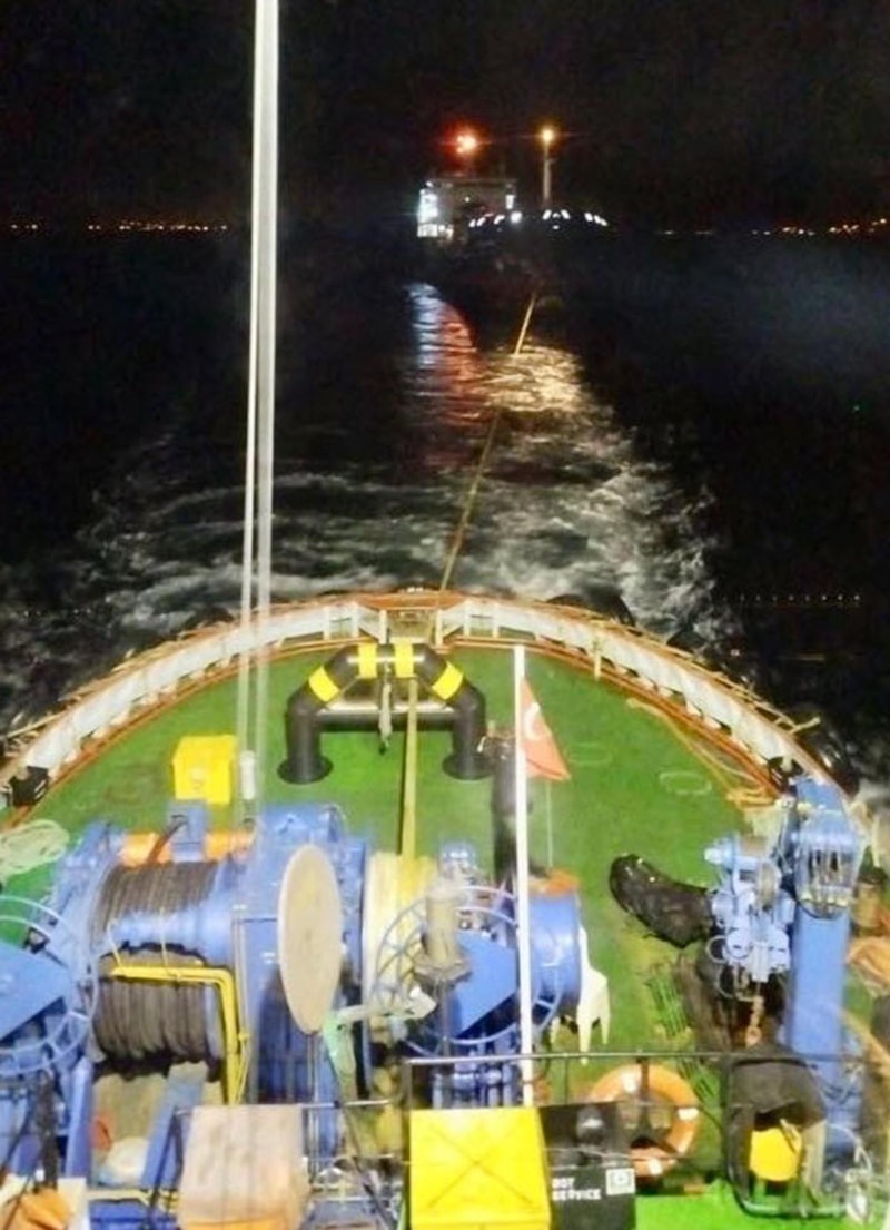 Makine arızası sebebiyle akıntıyla birlikte sürüklenmeye başlayan geminin kaptanının ihbarı sonrası bölgeye, Kıyı Emniyeti Genel Müdürlüğü'ne ait 'Kurtarma-3' ve 'Kurtarma-14' römorkörleri sevk edildi.