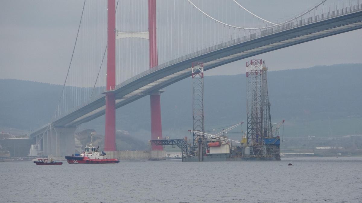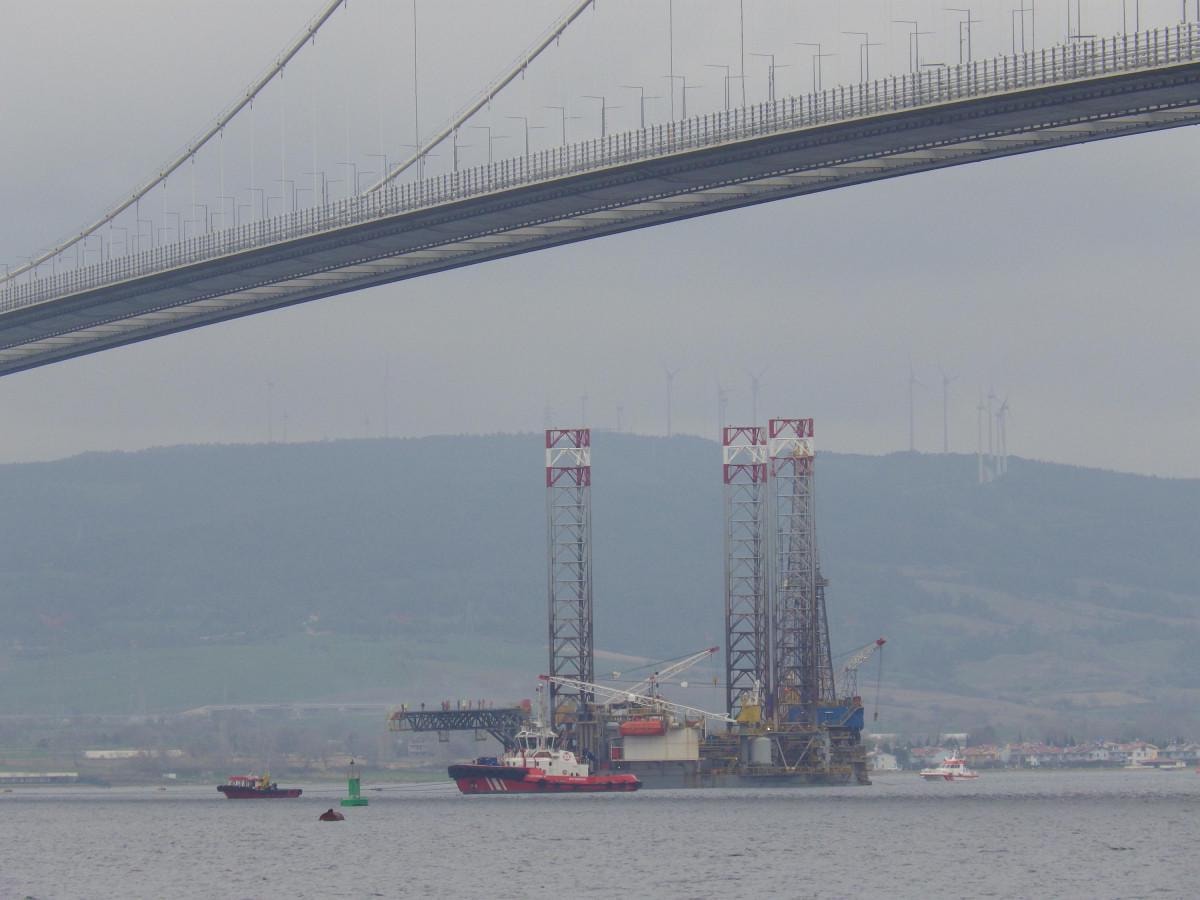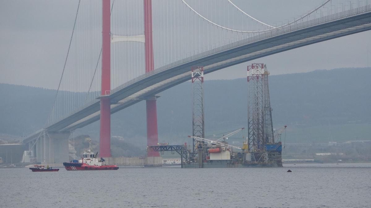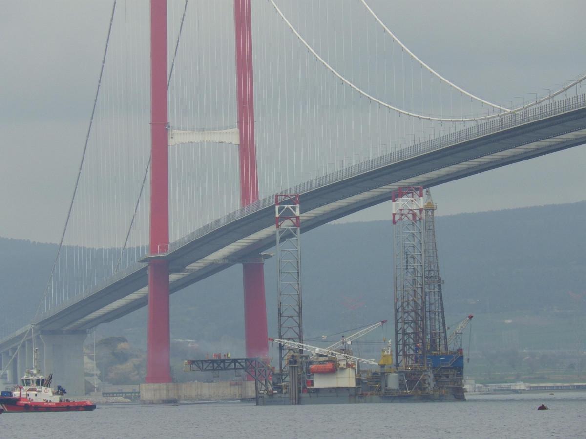 Burada platformun 3 ayağı 53 metrelik bölümü denizin dibine batırılarak, 1915 Çanakkale Köprüsü altından geçirildi.