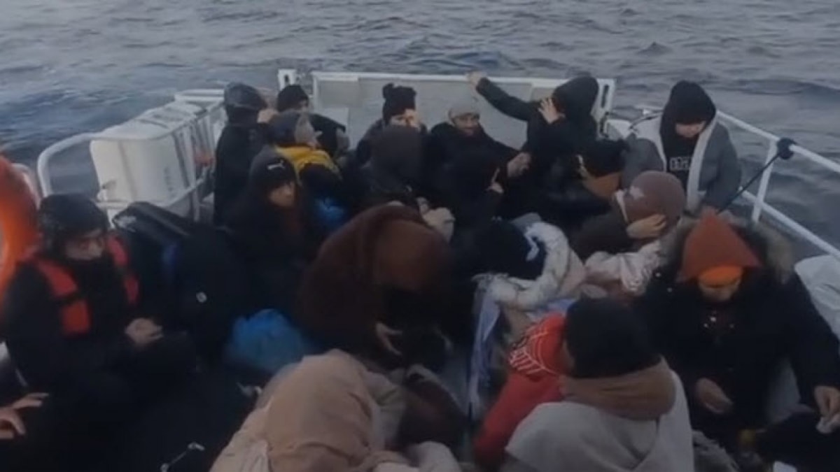 İçlerinde çocuklarından bulunduğu lastik bot içindeki 34 kaçak göçmen, Türk ekipleri tarafından kurtarıldı.