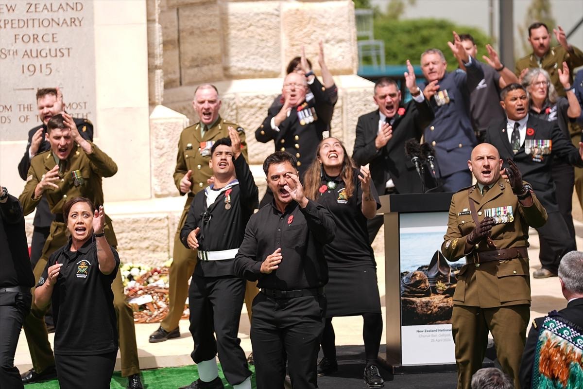 Savaşlarda hayatını kaybeden Yeni Zelandalı askerler için dua edilmesinin ardından kahramanlık şarkıları seslendirildi.