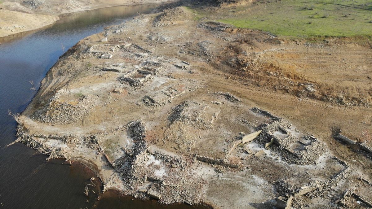 Suyun azalmasıyla 1990'da baraj yapımı için boşaltılan ve 1997'de Gökçeada'ya taşınan Eşelek'in eski evleri ve binalardan bazıları yüzeyde görünür hale geldi.