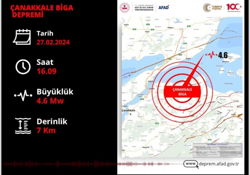 Çanakkale Biga’da 4.6 büyüklüğünde meydana gelen depremde AFAD ve ilgili kurumlarımızın tüm ekipleri saha taramalarına başlamıştır. An itibari ile olumsuz bir durum yoktur.