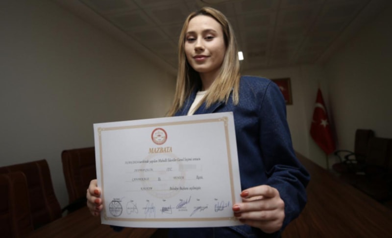 Yenice ilçesine bağlı Kalkım beldesinde belediye başkanlığını kazanan ve 31 Mart'ta seçilen Türkiye'nin en genç belediye başkanı olan Zeynep Çelik, mazbatasını alarak görevine başladı.