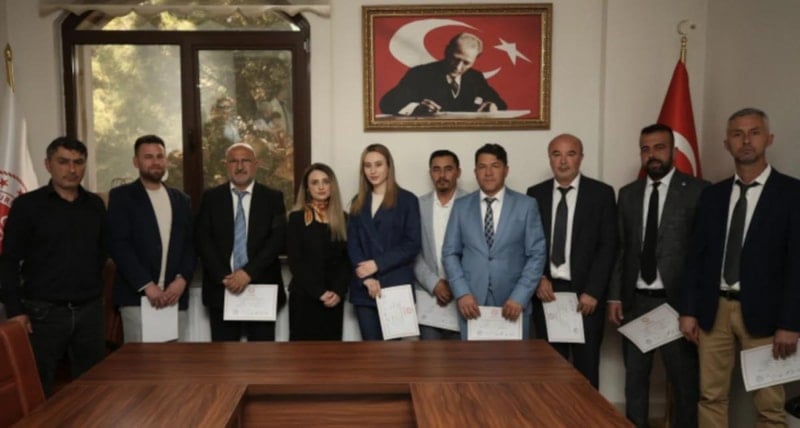 Çelik ile belediye meclisi üyeleri, İlçe Seçim Kurulu Başkanı Özlem Egemen Çavuşoğlu'ndan mazbatalarını aldı.