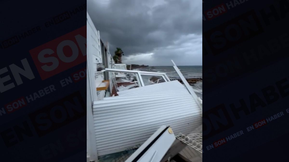 Kıyıya sıfır bir konut şiddetli rüzgar karşısında dayanamadı.