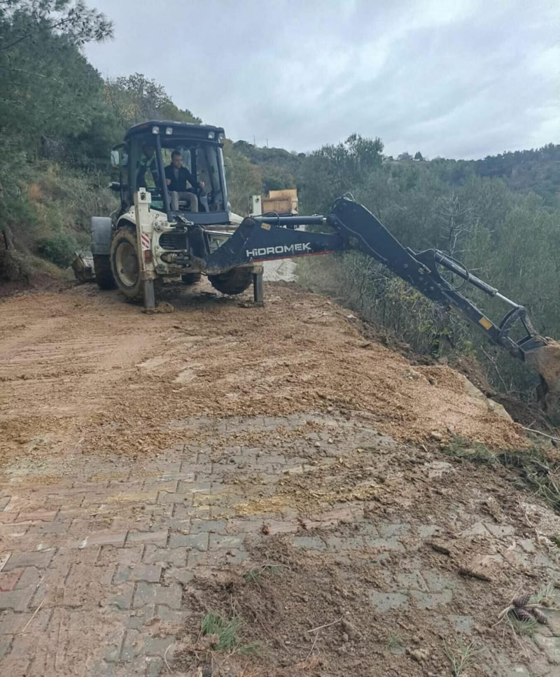 Ayvacık İlçe Özel İdare ekipleri, kapanan yolda temizlik çalışmasını gerçekleştirerek yolu trafiğe açtı.