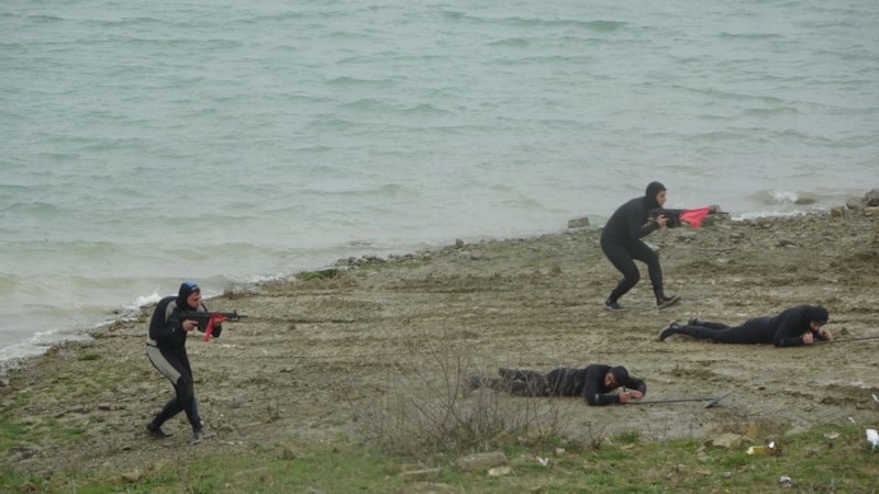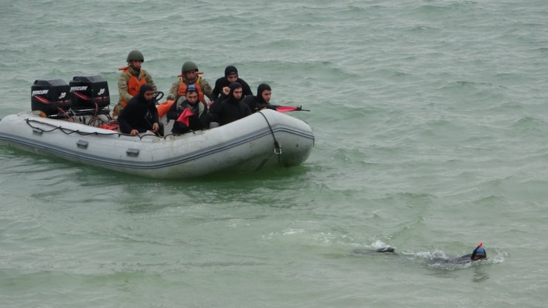 Eğitim kapsamında senaryo gereği, Karşı Kıyı İzleme Timi zodyak bot ile karşı karaya çıktı.