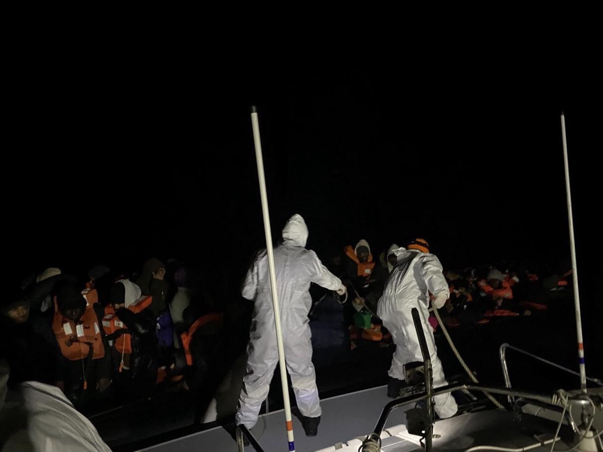 Sahil Güvenlik botu 'TCSG-28' tarafından, Yunan Sahil Güvenlik ekiplerince Türk kara sularına geri itilerek ölüme terk edilen lastik bot içindeki 47 kaçak göçmen kurtarıldı.
