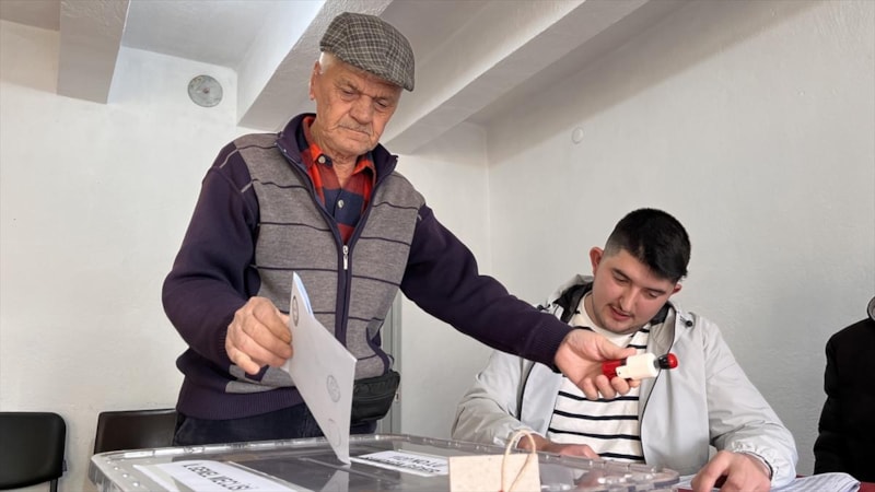 Köylerinde sandık kurulamayan Kazabatlılar, Mahalli İdareler Genel Seçimleri için oy verme işlemini komşu köyde oy kullanarak yerine getiriyor.