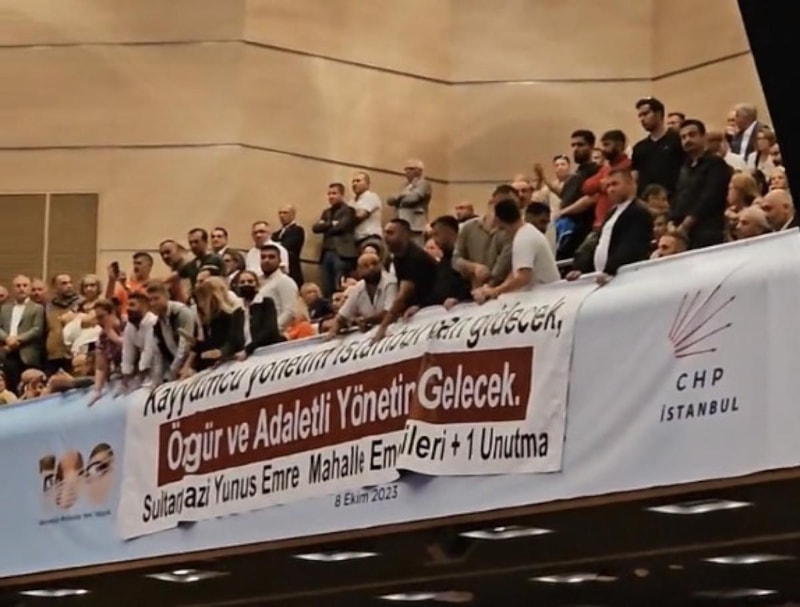 Yoğun katılımın gözlendiği kongrede, Canan Kaftancıoğlu'nun konuşma yaptığı sırada Genel Başkan Kemal Kılıçdaroğlu aleyhine salona asılan ve partililer tarafından atılan "Kayyum gidecek, Özgür gelecek" sloganları atıldı.