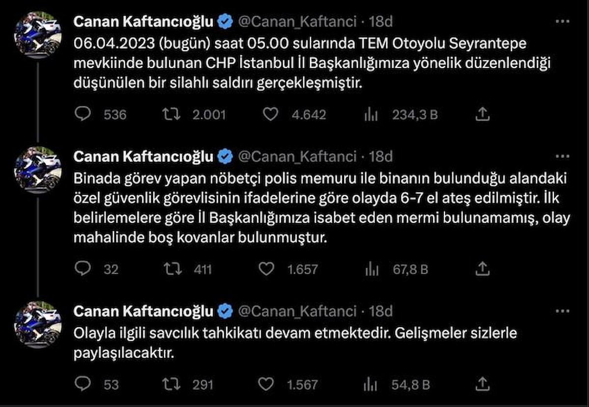 Konuya ilişkin olaydan 6 saat sonra paylaşım yapan Kaftancıoğlu, sosyal medya hesabında şu ifadelere yer verdi: