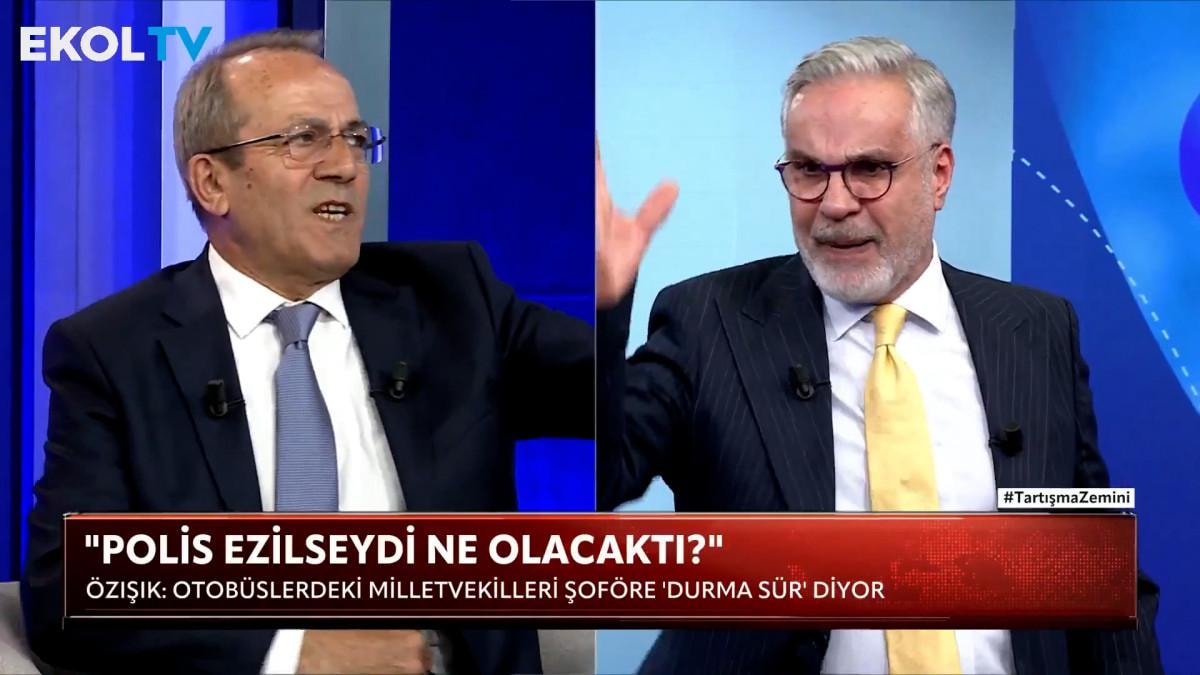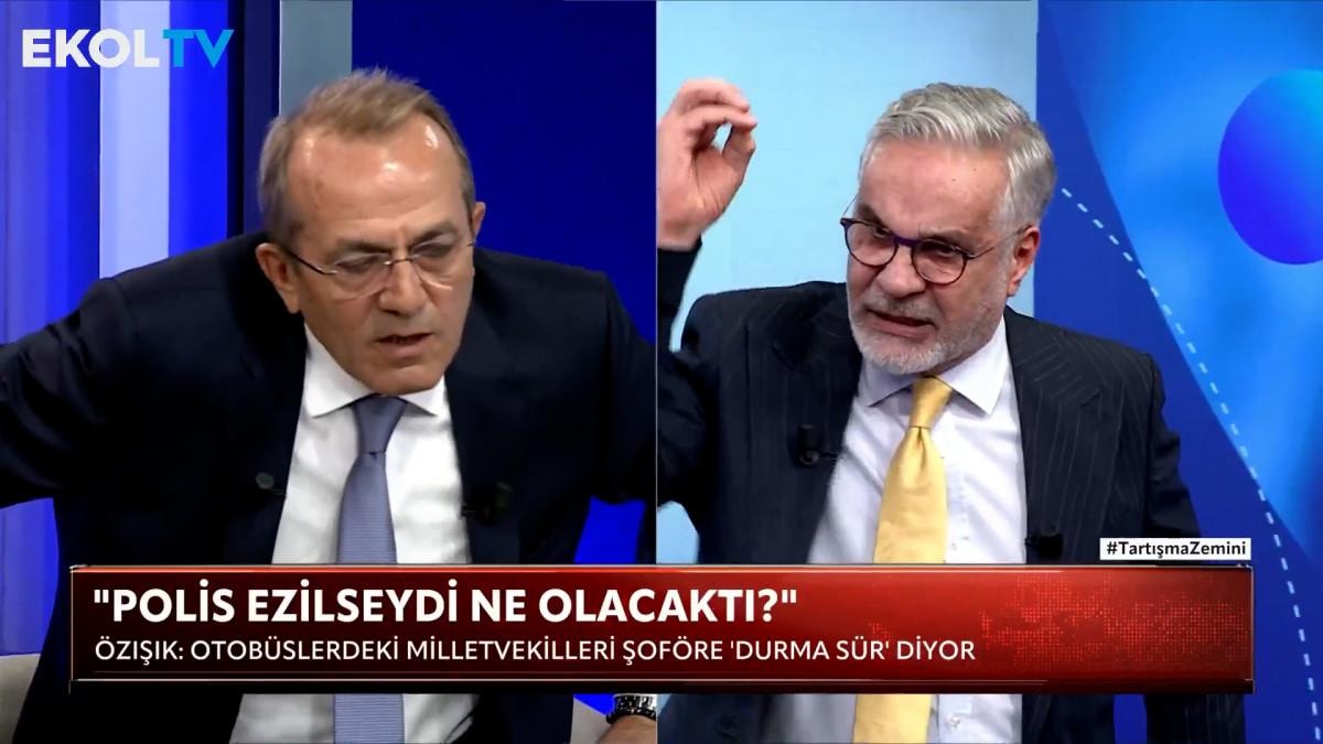 Ekol TV'de Çağlar Cilara'nın sunumuyla ekranlara gelen Tartışma Zemini programında karşı karşıya gelen ikili, görüntüleri yorumlarken gerilmeye başladı.