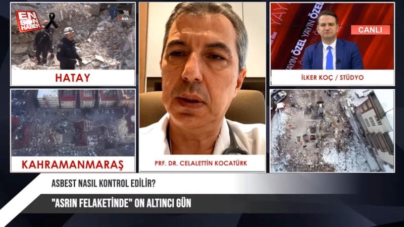 Ensonhaber canlı yayınına katılan Göğüs Cerrahisi Uzmanı Profesör Celalettin Kocatürk, asbest tehlikesinin yol açabileceği hastalıkları ve alınması gereken önlemleri sıraladı.
