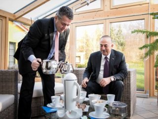 Samimi bir ortamda gerçekleşen görüşmede, Alman Bakan, Türk mevkidaşına elleriyle Türk çayı doldurdu.