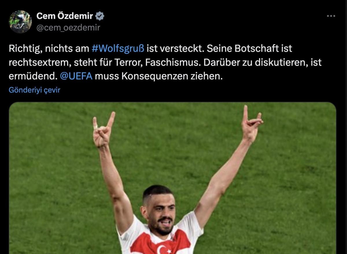 UEFA'yı etiketleyen paylaşımında Özdemir, "Bu mesaj aşırı sağcıdır, terörü ve faşizmi temsil eder. UEFA ceza vermelidir." ifadelerini kullandı.