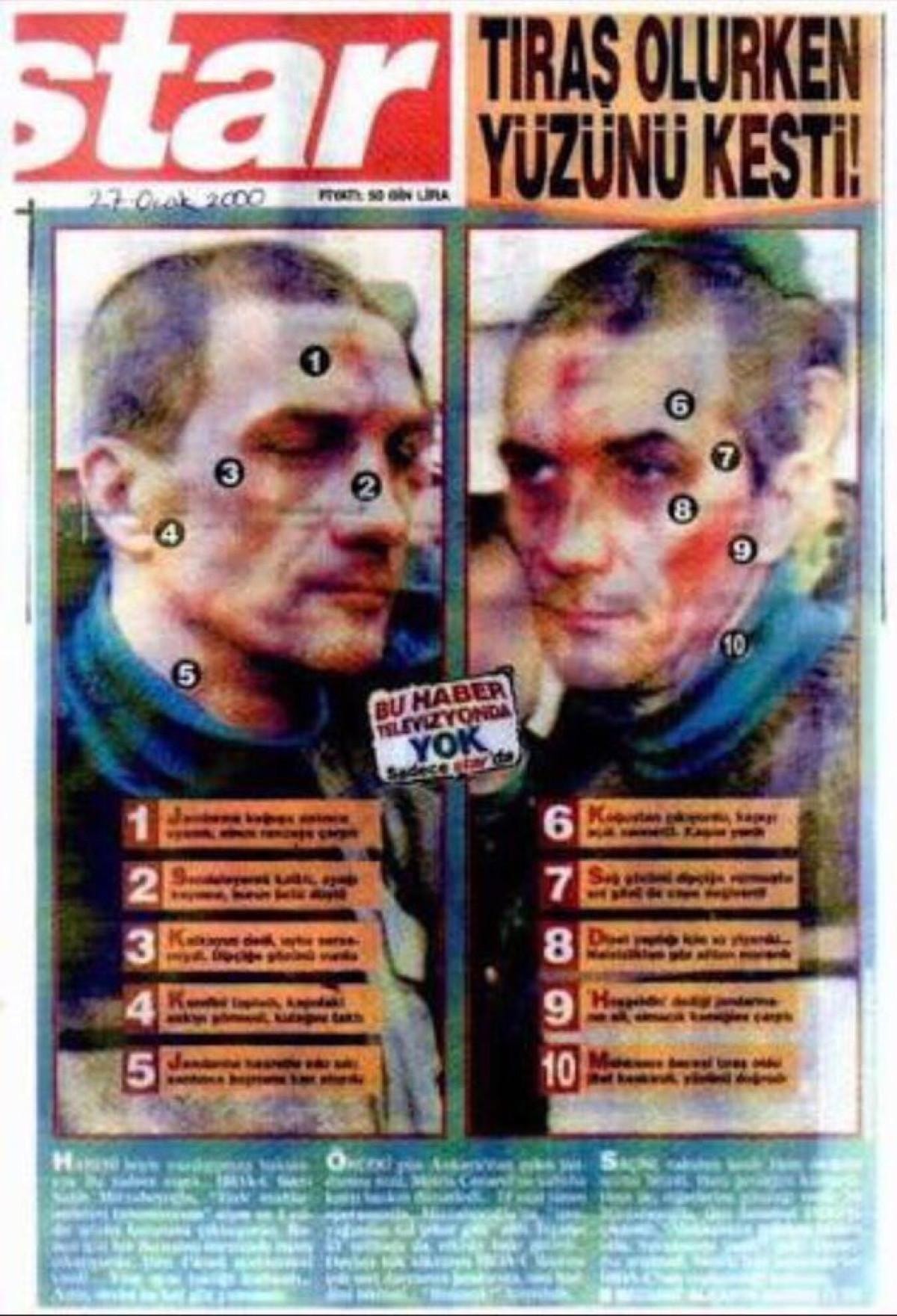 Yakup Köse, kamuoyunda Salih Mirzabeyoğlu olarak tanınan, 28 Şubat sürecinde İbda-c lideri olduğu iddiasıyla tutuklanan Salih İzzet Erdiş'in cezaevinde işkence gördüğü fotoğrafı manşetine taşıyarak "Tıraş olurken yüzünü kesti" metni yazılan gazete küpürü Uzan'a gösterdi.