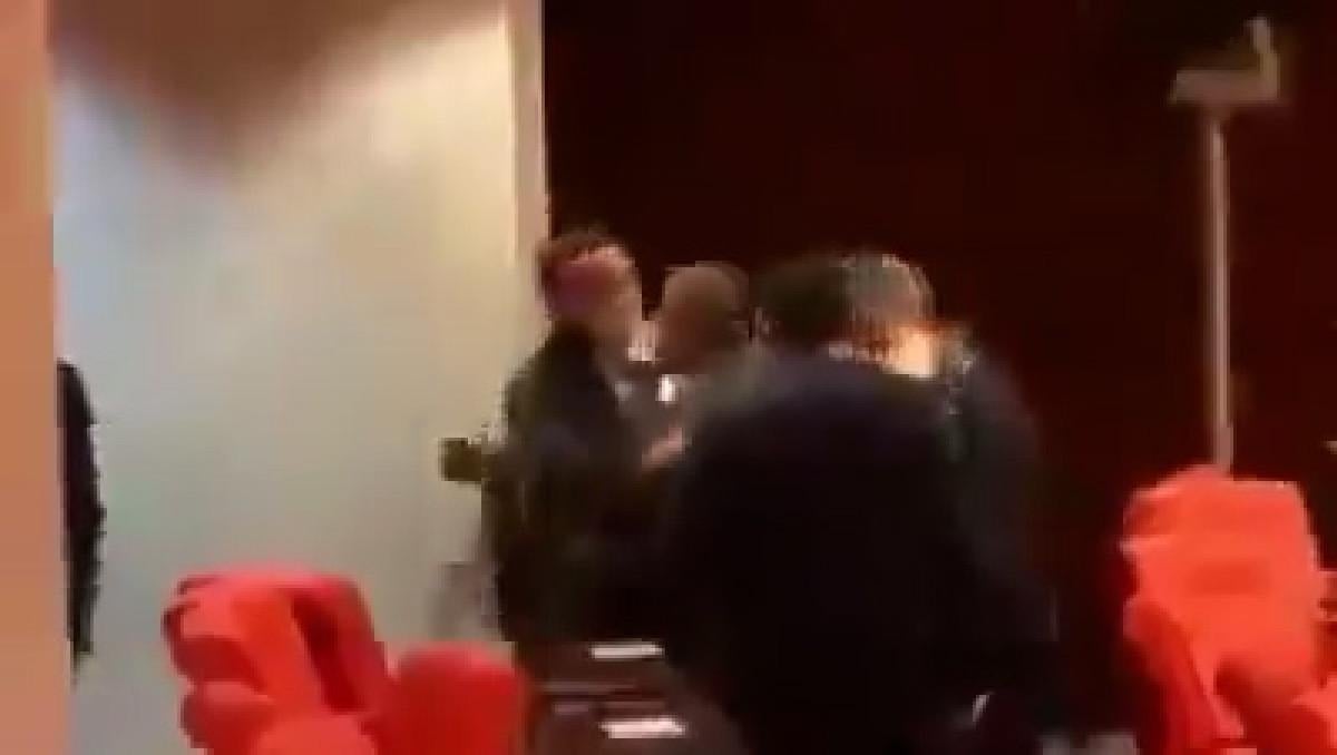 İyi Partili Halil İbrahim Oral ile sözlü tartışmasının ardından küfür etmeye başlayan Cemal Enginyurt'u diğer vekiller zor sakinleştirdi.