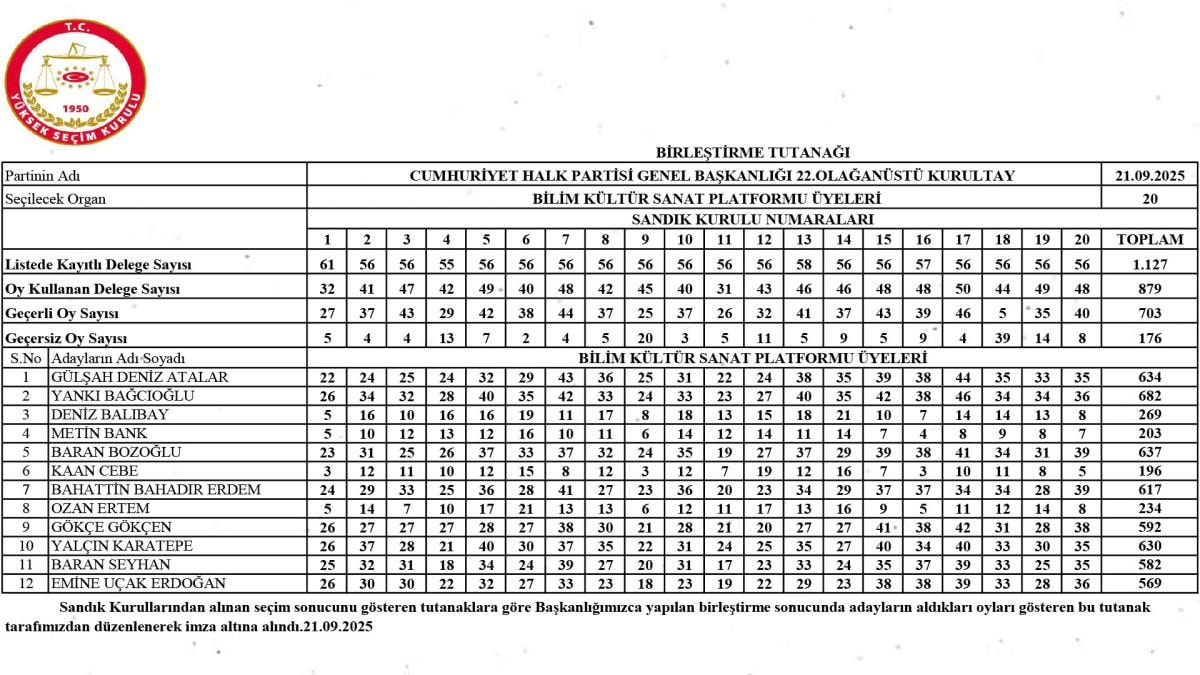Kurultayda 60 kişilik PM listesinin 8'i ise Bilim Kültür Sanat Platformu'ndan (BKSP) listeye girdi. 12 kişiden oluşan platformda Gülşah Deniz Atalar, Yankı Bağcıoğlu, Baran Bozoğlu, Bahattin Bahadır Erdem, Yalçın Karatepe, Gökçe Gökçen, Emine Uçak Erdoğan ve Baran Seyhan en yüksek oyu alan isimler oldu.