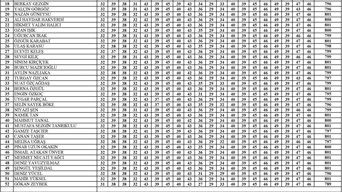 52 kişilik PM listesi şu şekilde sıralandı: