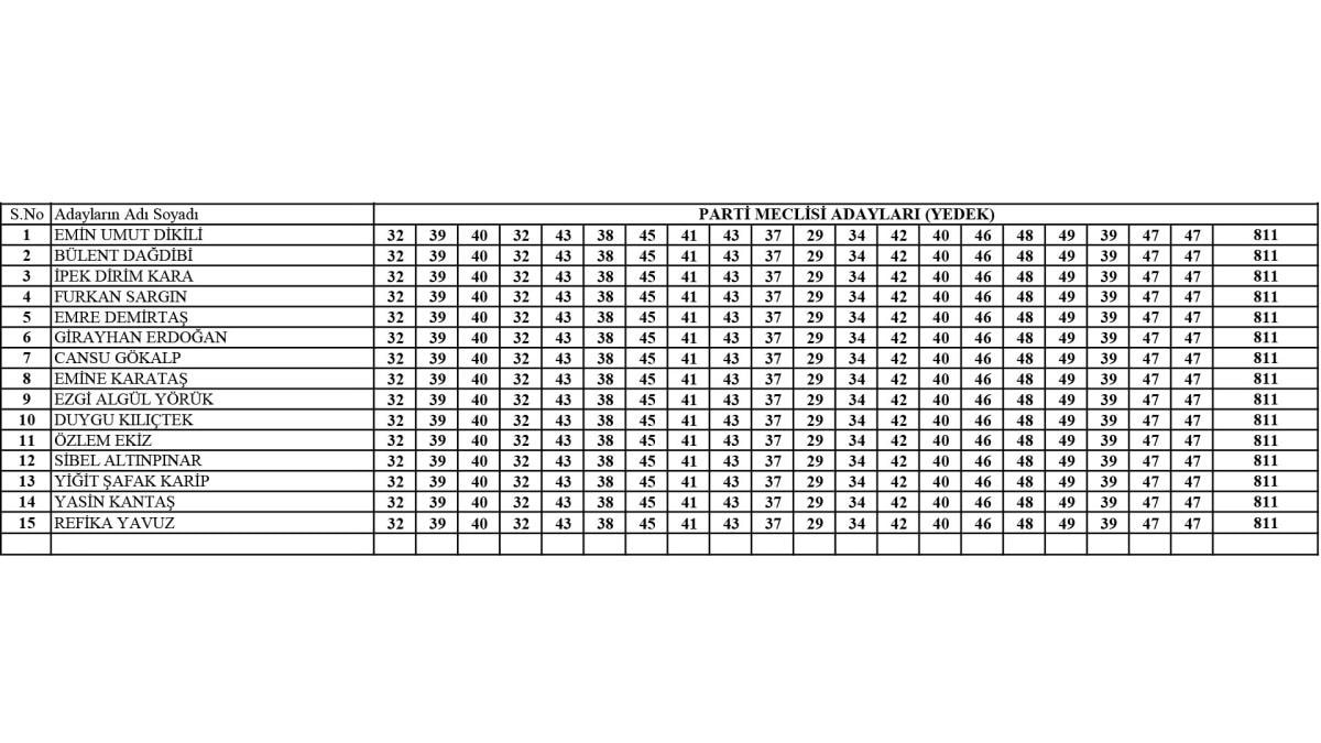 YDK listesinde ise Çankaya İlçe Başkanı seçilen Ali Balta'nın yerine Edirne İl Başkanı Harika Taybıllı yer aldı.