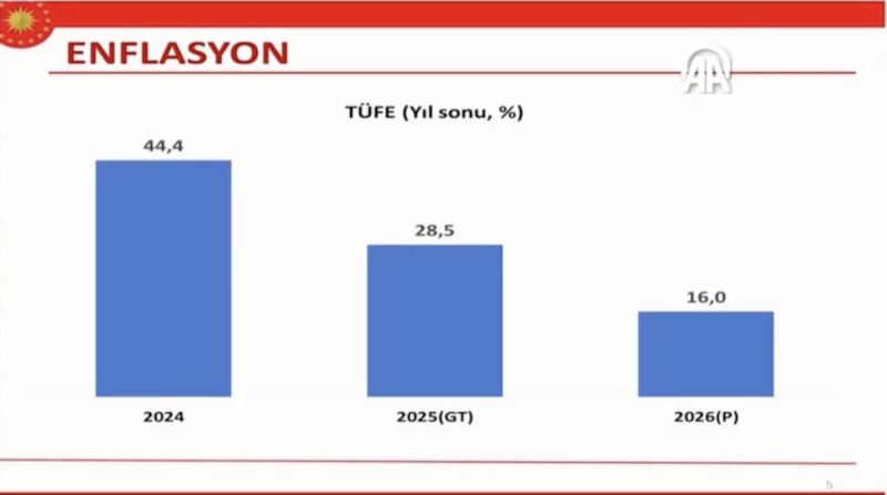 Aynı zamanda uygulamakta olduğumuz arz yönlü tedbirlerin de etkisiyle 2026 yılı sonunda tüketici fiyat artışının yüzde 16 olarak gerçekleşmesini beklemekteyiz.