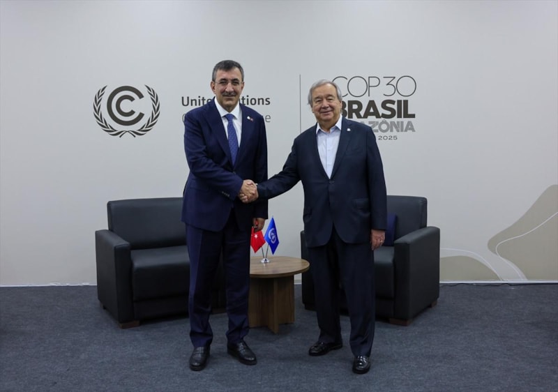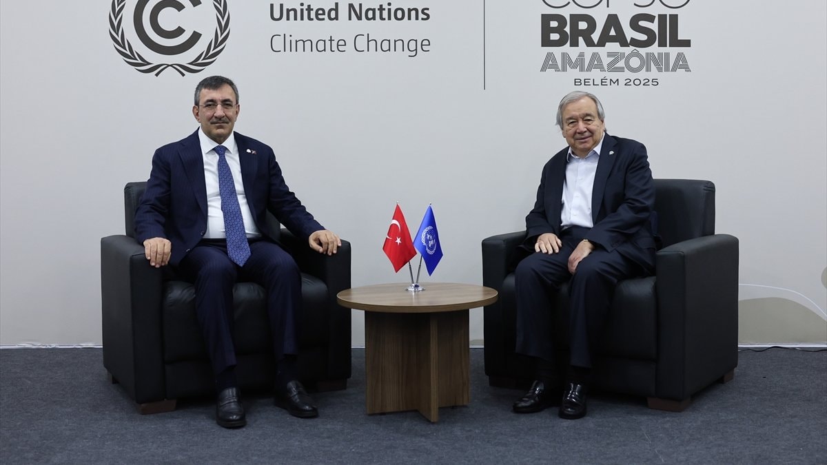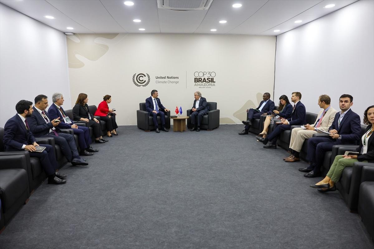 Cumhurbaşkanı Yardımcısı Cevdet Yılmaz, bu kapsamda, BM Genel Sekreteri Antonio Guterres ile Brezilya'nın Belem kentinde bir araya geldi.