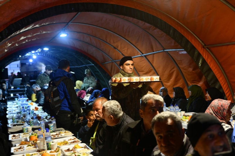 Bakan Kurum, deprem bölgesindeki çalışmaları kapsamında geldiği Sakçagözü Mahallesi’nde Mehmetçiklerin kurduğu çadırda depremzede vatandaşlar ile iftar açtı.
