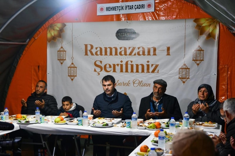 Bakan Murat Kurum, Kahramanmaraş merkezli 6 Şubat'taki depremlerin etkilediği Gaziantep'in Nurdağı ilçesinde depremzedelerle Mehmetçik İftar Çadırı'nda orucunu açtı.