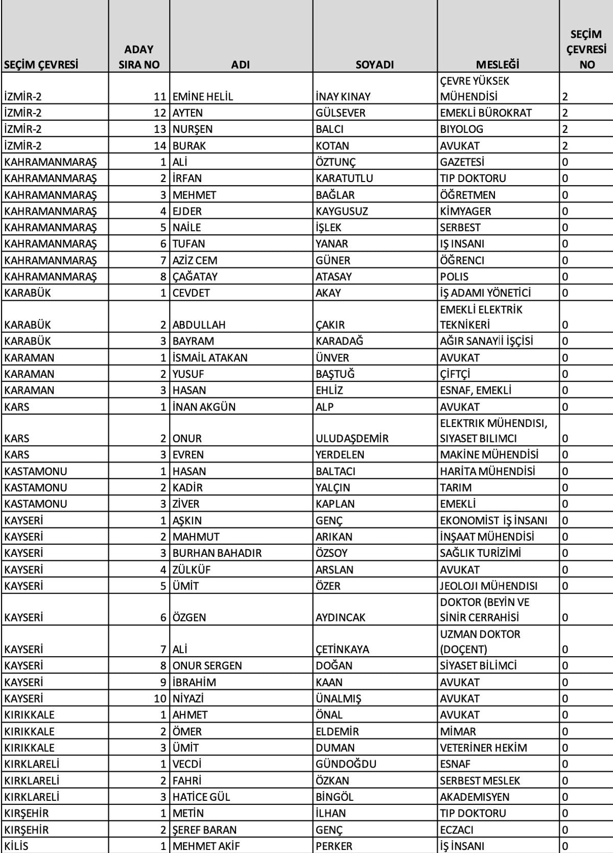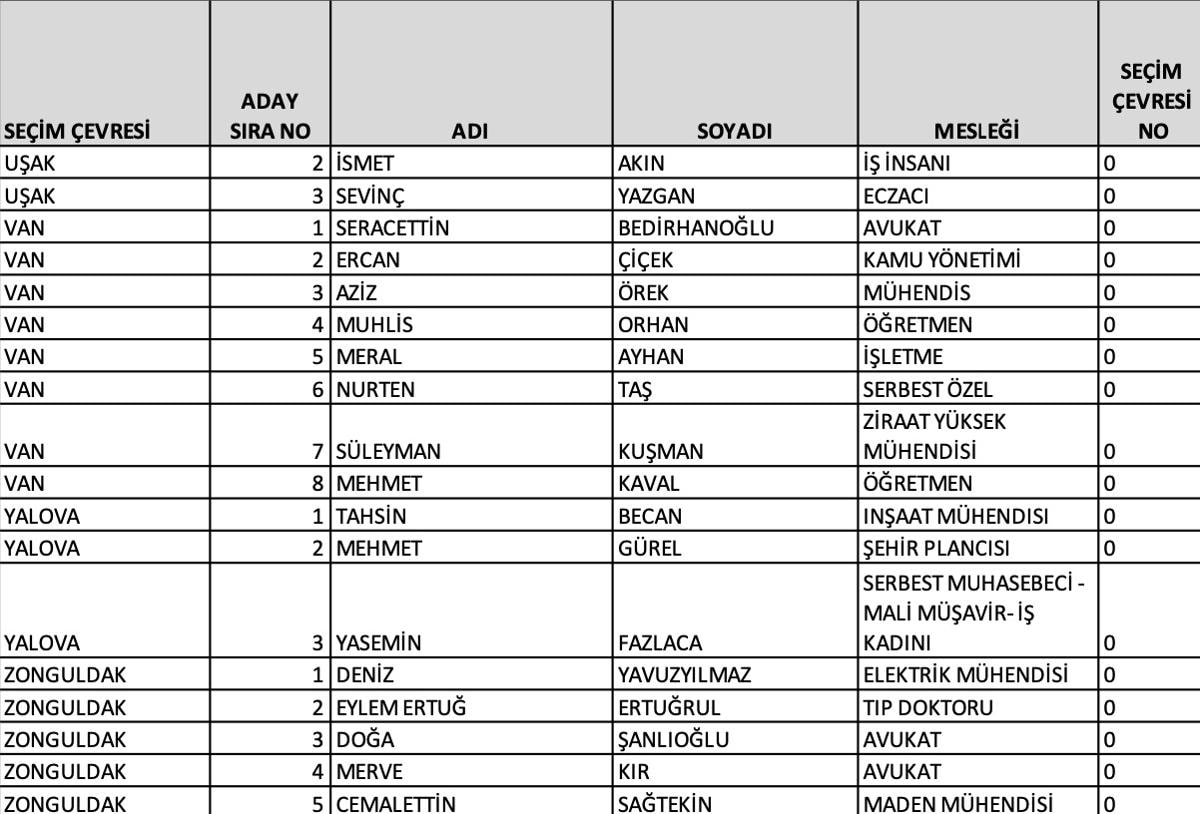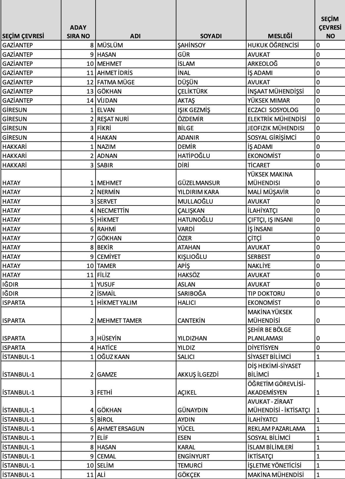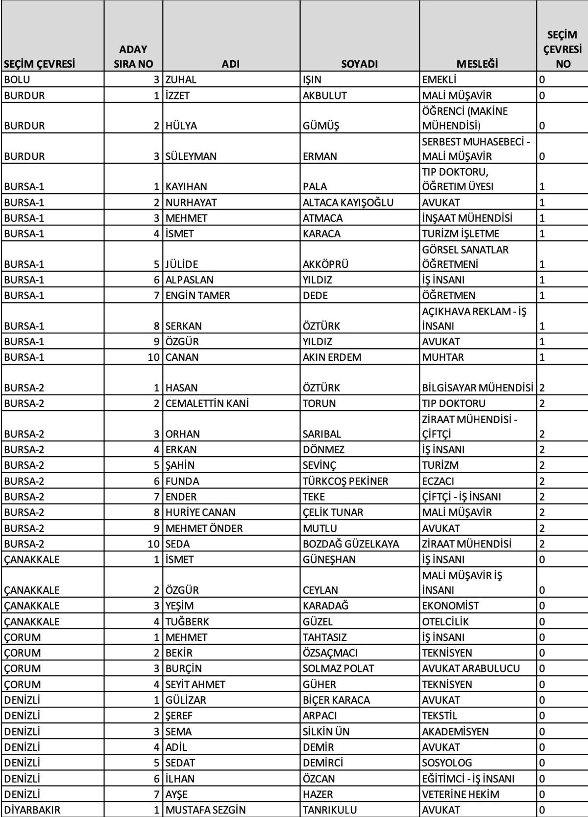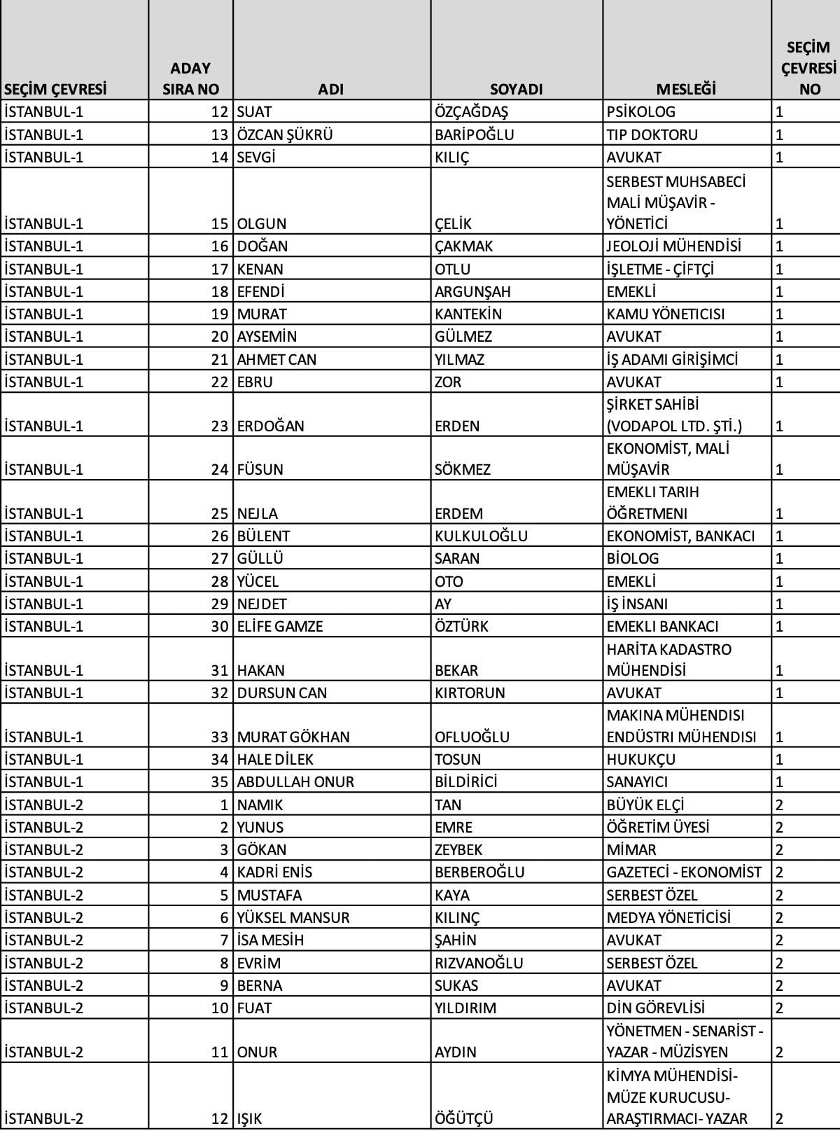 Ankara 1'inci bölge adayları