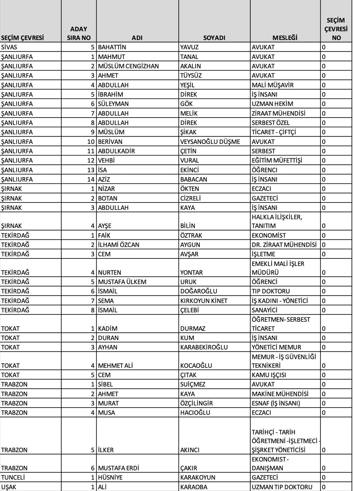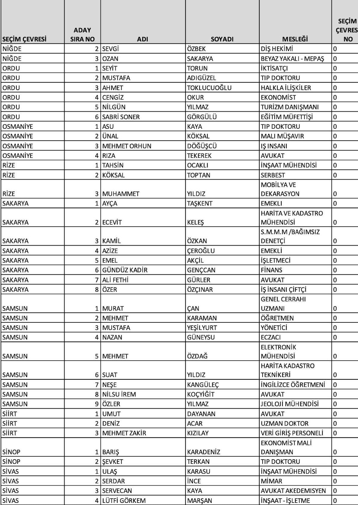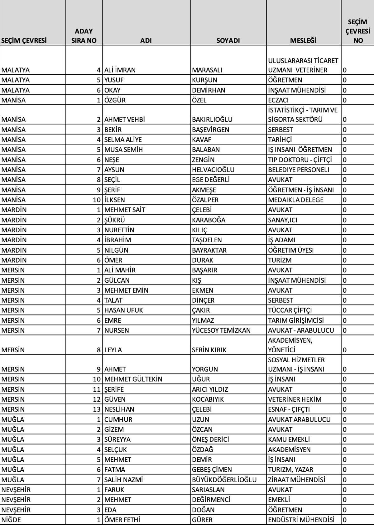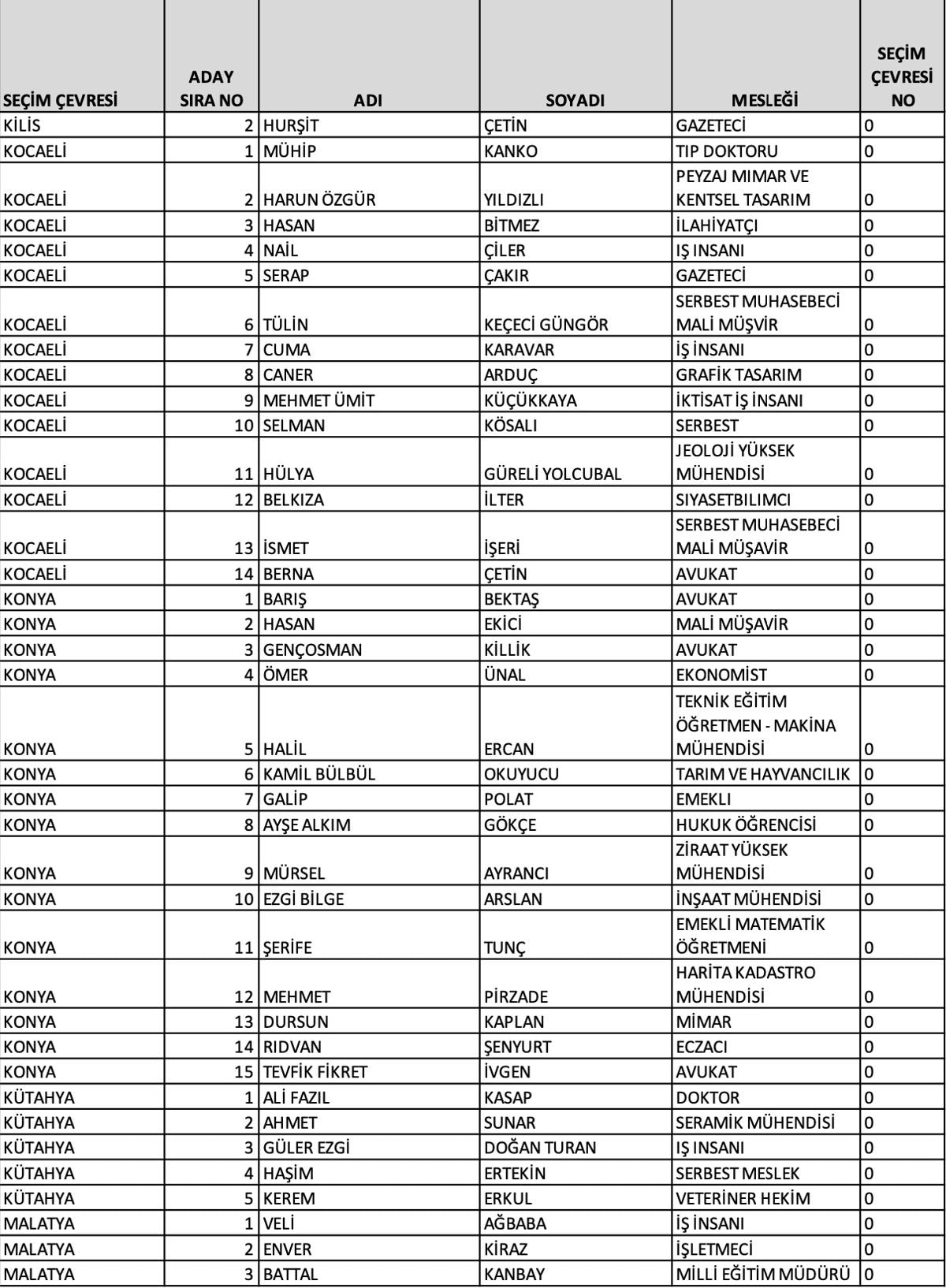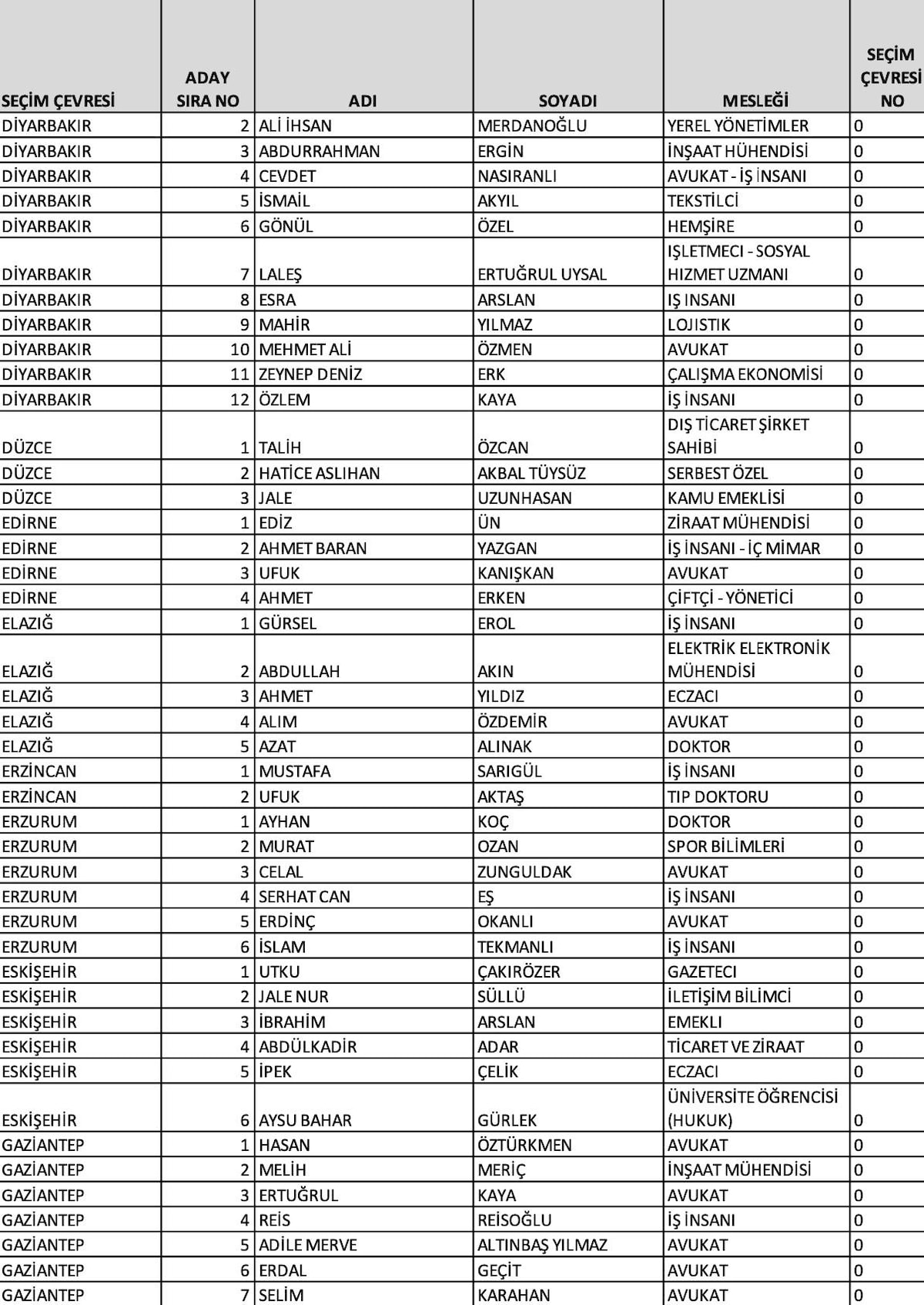 Ankara 1'inci bölge adayları