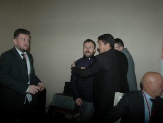 Yalçın Görgöz konuşmasına devam ederken Halil Ceylan'ın oğlu Mehmet Ceylan, yerinden kalktı. Kürsüye giden Mehmet Ceylan, Görgöz’ün boğazına sarılıp kürsüden indirmeye çalıştı.