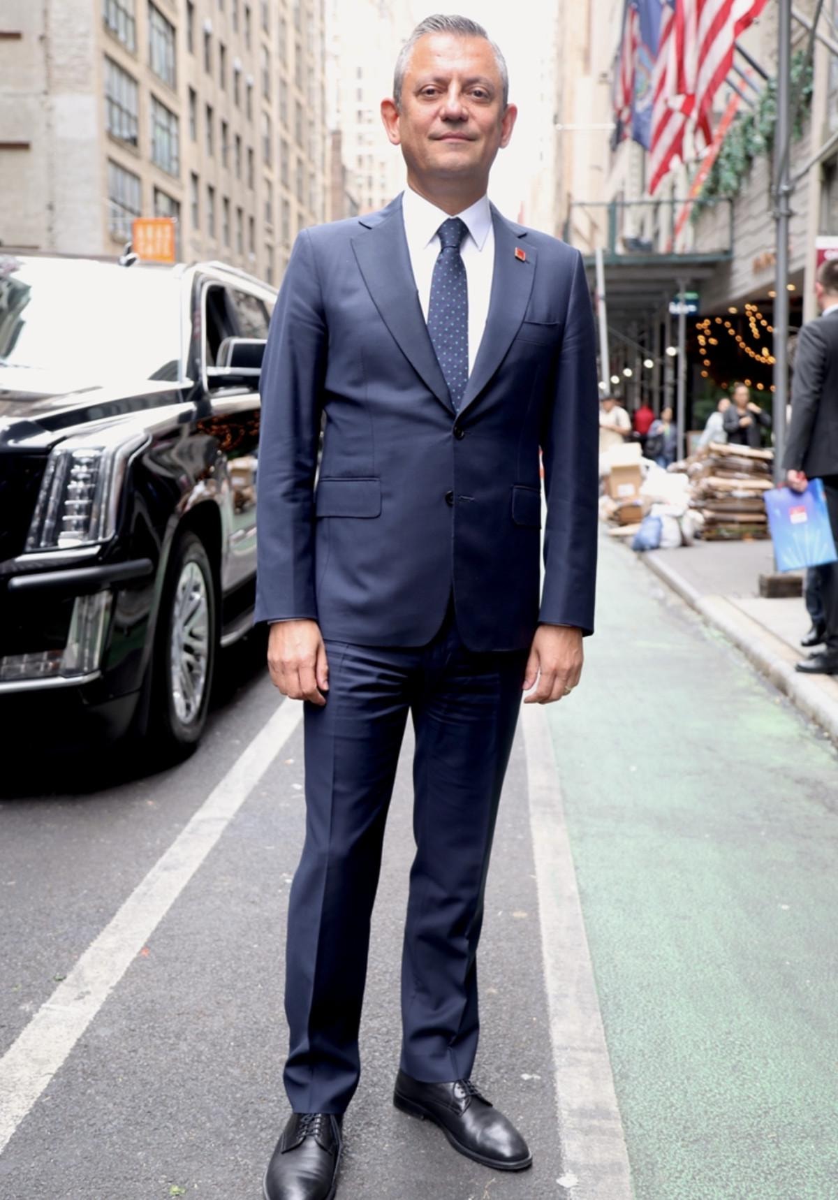 Özgür Özel, görüşme öncesi New York'ta kameralara poz vermeyi de ihmal etmedi.