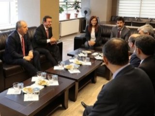 Konukları kapıda karşılayan Çoban ve Kaya, daha sonra heyetle bir görüşme gerçekleştirdi.