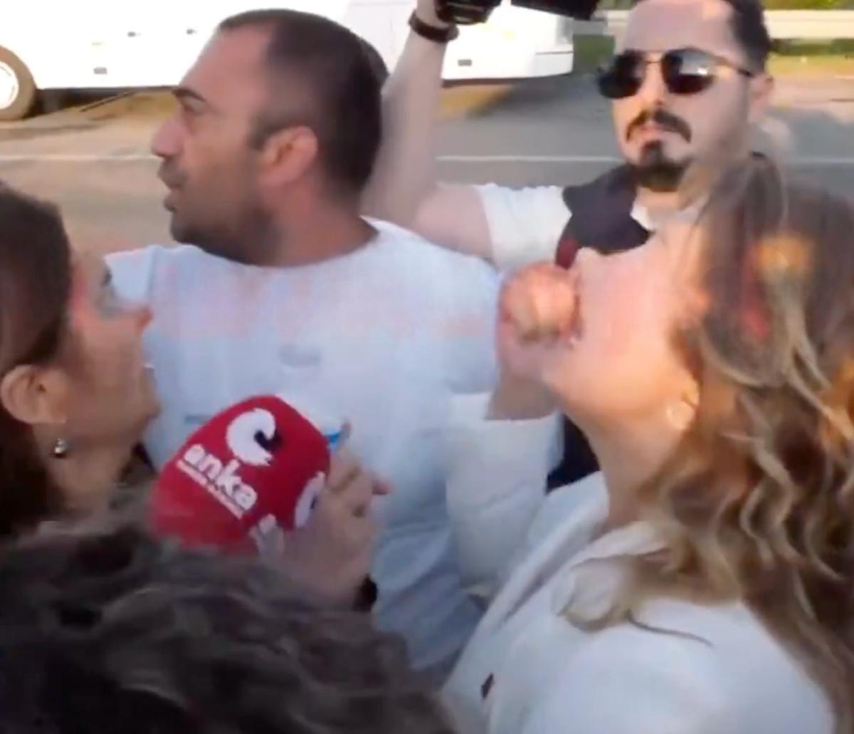 O sırada Asu Kaya'nın etrafını saran grup, birkaç şişe su uzattı ancak Kaya, ilk başta verilen suyu içmek istemedi.
