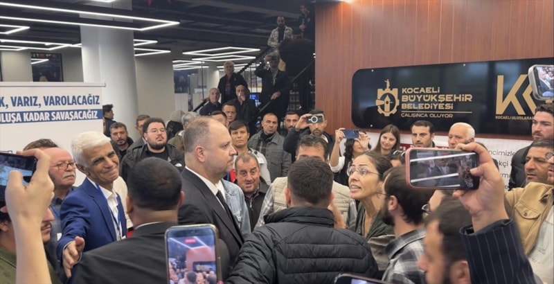İl başkan adaylarından Erdem Arcan'ın kongrenin gerçekleştirildiği Kocaeli Kongre Merkezi'ne girişi sırasında bir kişi, görüntü almak isteyen bir kadın gazeteciyi ittirdi.