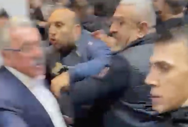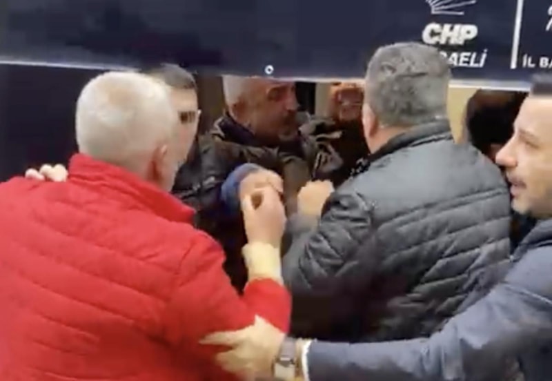 CHP Kocaeli İl Başkanlığının 39. Olağan Kongresi'nde bir partiliyle gazeteci arasında "görüntü alınması" sırasında yaşanan gerginlik sonrası arbede çıkarken o anlar kameraya yansıdı.