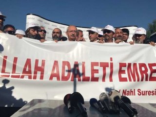 Adalet yürüyüşünün 17. gününde Kemal Kılıçdaroğlu'nun "Allah adaleti emreder" pankartı açtığı görüldü.