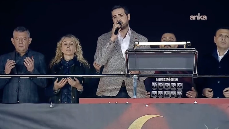 Şehitler için “Ruhları şad olsun” diyerek konuşma yapan Özgür Özel, dua okunması için mikrofonu CHP Arnavutköy İlçe Başkanı Tekin Aras’a verdi.