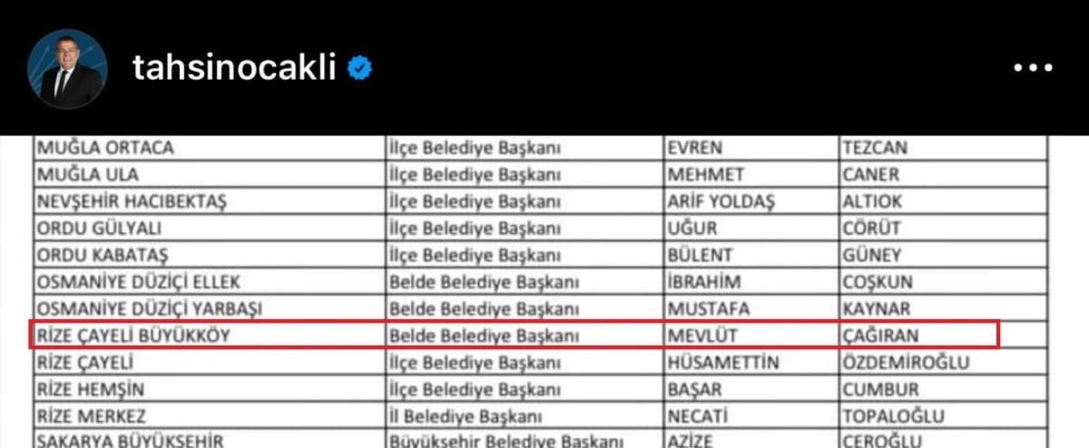Listede Büyükköy Belde Başkan adayı olarak Mevlüt Çağıran’ın ismi yer aldı.