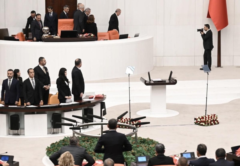 Meclis'in yasama yılı açılışında CHP Genel Başkanı Özgür Özel, Cumhurbaşkanı Recep Tayyip Erdoğan'ı ayakta karşıladı.