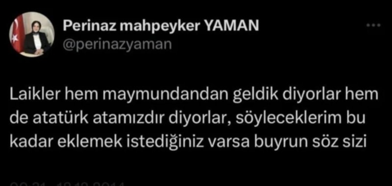 Yaman paylaşımında, "Laikler hem maymundan geldik diyorlar hem de Atatürk Atamızdır diyorlar, söyleyeceklerim bu kadar eklemek istediğiniz barsa buyurun söz sizin." ifadelerini kullandı.