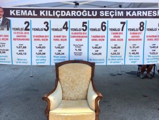 CHP Genel Merkezi önünde pankart açan partililer, Kılıçdaroğlu'nun seçim karnesini çıkardı.