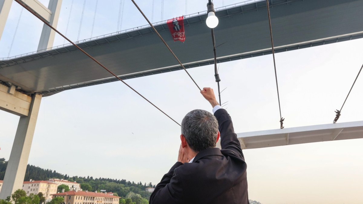 Söz konusu afiş Özgür Özel, Sosyalist Enternasyonal Temsilcileri ile boğaz köprüsünün altından geçerken indirildi.